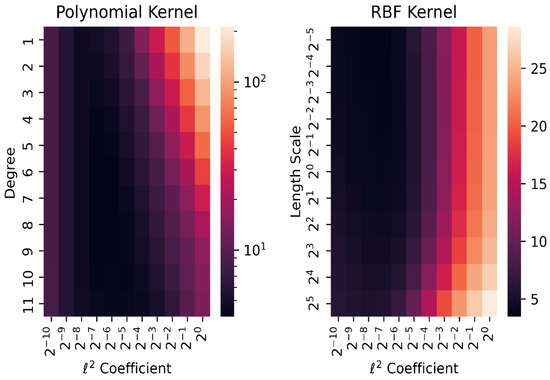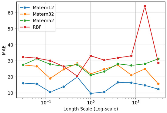 Figure 3 shows how the chosen kernel and its associated hyperparameter affected the performance of the Gaussian process model. It is evident that the Matérn kernel provided the best performance, which is in line with earlier findings. Additionally, based on the data, it appeared that the function associated with the issue was very non-linear and non-smooth because non-smooth Matérn kernels exhibited greater performance.
