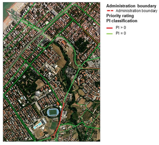 Example of GIS mapping of the priority rating (PI classification).