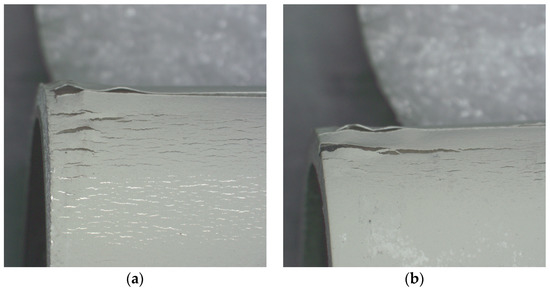 According to the bending test results, the first conclusion was that P5 and P8 paints were poorly milky when all the other residual cleaning agents were used in the tests (see Table 8). The bending test, combined with the cross-cut test, provided the result that the paint did not follow the deformation of the plate along the cut of the paint because it was separated from the plate. This phenomenon and result are illustrated by the photos of the tested samples under the microscope in Figure 2.