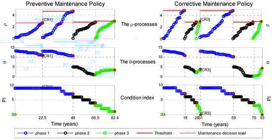 - Mercier, S.; Pham, H.H. A Preventive Maintenance Policy for a Continuously Monitored System with Correlated Wear Indicators. Eur. J. Oper. Res. 2012, 222, 263–272. [Google Scholar] [CrossRef]