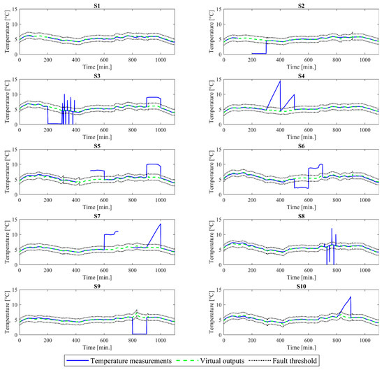 Comparison of temperature measurements and virtual outputs with the fault threshold.