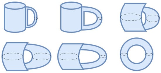 Example of homeomorphism: a mug is topologically equivalent to a donut.