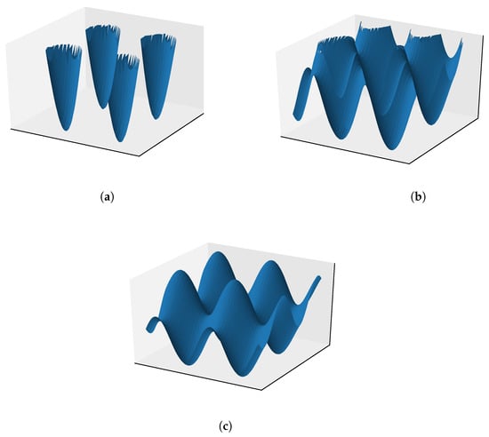 where denotes the respective thresholds of filtration. The topological features of these sequenced sublevel sets can be quantified by computing the EC at each filtration threshold . By obtaining an ordered pair-value , it is possible to outline the topological feature of the manifold and the corresponding function. In this work, 20 different filtration values were selected to correspond to the 20 sublevel sets. It should be noticed that there is not much difference in performance when the number of filtrations is greater than 15 in the study. The EC was calculated by determining the sum of all n-dimensional topological bases, also known as the total Betti number of each base (, , ..., for a n-manifold). An example of the 3-manifold filtration procedures can be seen in Figure 8. At the first filtration value , the sublevel set comprises 4 connected components, reflecting 4 local minima in the function f, resulting in . When the filtration increases to , only 1 connected component remains, but 2 holes appear, suggesting the existence of local maxima in the function f, yielding an EC value of . At the last filtration , the original manifold is restored, with . Therefore, the resulting EC Curve is [4, −1, 1].