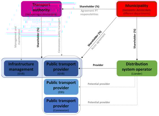 The need for a collaboration with clear ownership, roles and responsibilities for the successful management of collaboration in regard to flexibility—as seen in the interview results—is in line with the literature [,,,,]. Since collaboration for the setup of a collaboration requires clear agreement on ownership, roles and responsibilities, these elements need to be addressed. Although a clear insight on ownership, roles and responsibilities is given for the collaboration, this collaboration does not develop by itself. Therefore, the question is why this collaboration is not initiated in the case and in general. This fragmented ownership and interests call for an initiator for collaboration. The literature indicates that public stakeholders (such as the municipality and the transport authority) have more influence than private parties (transport provider) in collaborations [], which put the public stakeholder in the initiator position. As indicated by Priemus, public stakeholders can have a more entrepreneurial role in creating clarity for other stakeholders []. This is strengthened with the necessity of political leadership in the development of sustainable transformations [], and that strong experience with an area and sector(s) is of strong added value for initiating parties [], as is the case for public stakeholders. Based on both the literature and the interviews, this shows mainly that based on the way the scope is set (number of stakeholders involved), the most logical initiator can be found with private parties (approx. < three stakeholders) or public parties (approx. ≥ three stakeholders). The case study and literature show that for the ACSA case, the municipality is in a logical position to be the initiator, given their broad societal scope and their (in)direct influence (through ownership) on all main public stakeholders involved as well as GVB. One important note is that different departments within a stakeholder can have different internal interests, which require trade-offs. For the municipality, this can be for example different interests between Deelnemingen and Verkeer & Openbare Ruimte. These different perspectives per stakeholder indicate the importance of finding a common approach from stakeholders internally as well.