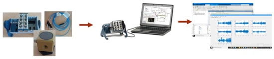 The measurement of dynamic parameters was performed using uniaxial and triaxial piezoelectric sensors (PCB Piezotronics). These devices have a sensitivity of 1000 mV/g, a measurement range of ±5.0 V, and a frequency range of ±5.0% from 0.5–3000 Hz. The acquisition system comprises an NI CompactDAQ data platform (National Instruments) with NI 9234 acquisition cards (sample rate of 1650 Hz). Coaxial cables capture and transfer the acceleration input (Figure 8) [].