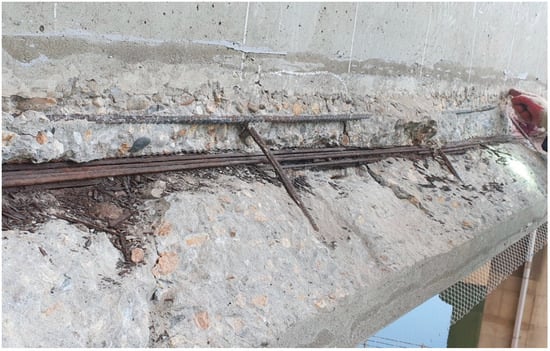 In recent years, the number of cases where steel wires deteriorate as the internal tendons of PSC-I bridges are exposed has been increasing gradually in South Korea, as shown in Figure 5. In the case of RC slab and Rahmen bridges, the most significant problem is the exposure of rebars due to the deterioration of concrete materials, excluding the deck of the bridge. For PSC bridges, the reduction of load-carrying capacity due to the deterioration of internal tendons is the most serious problem [13,14,15].