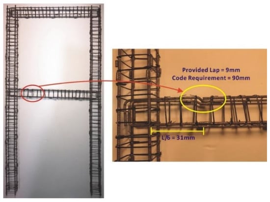The reinforced concrete (RC) moment resisting frame (MRF) is among the most common building construction practices in the modern world [1]. In recent earthquakes, these buildings have suffered damages mainly due to their inadequate design and flawed engineering practices in developing countries [2,3]. Many countries follow international building codes which have stringent building code requirements for high seismic zones. However, the construction practices in developing countries are slack, which has caused a severe threat to these buildings. This vulnerability could be attributed to various kinds of non-engineering defects in the buildings and has been widely accepted by experts in the past [4,5]. In this research, the authors have investigated improper lap splicing as an existing defect in RC frame construction which can occur due to incorrect or inadequate design.