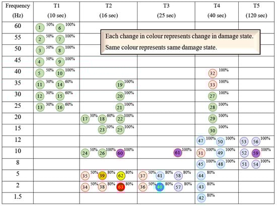| 32–38 | No cracks | No significant changes in the cracks. The frame was able to resist higher frequencies (i.e., 35 Hz and 40 Hz) and also low frequencies (i.e., 5 Hz and 2 Hz) with lesser (50%) amplitude. |