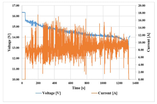 In Equation (1), is the system’s consumption, is the system’s nominal voltage, and is the average current. When factory data are unavailable, average consumption should be determined by measurement. Tests should be carried out under conditions that best reflect real use. It is vital to bear in mind that the replacement of individual components, e.g., engine or propeller, can have a decisive influence on consumption.
