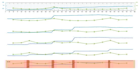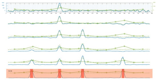 Therefore, outlier noise can be identified when the difference between the sampled value and local median is higher than , t = 3 []; then, replaced with the median, , as given by Equation (10):
