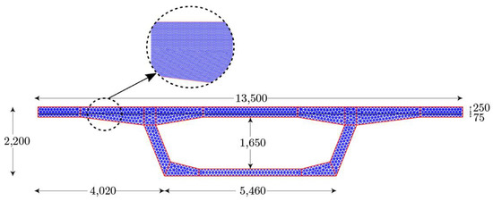 Figure 1. Finite element mesh of the girder cross-section; dimensions in mm.