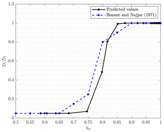 In Equation (2), D ( h d ) denotes the diffusivity of the concrete (mm2/day) as a function of h d , t 0 is the number of curing days, and U ( t t 0 ) is the Heaviside unit step function. Since the diffusion coefficient D is a function of the internal drying humidity, Equation (2) is a non-linear differential equation and iterations are needed to calculate its solution. D can be estimated with Equation (3):