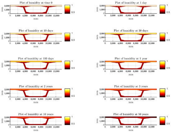 Figure 4. Humidity profiles of the box girder bridge cross-section at different times.