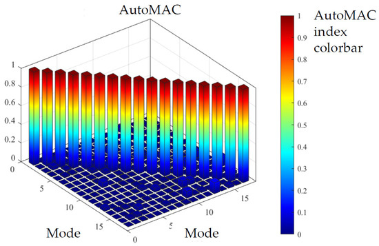 AutoMAC matrix for all the identified vibration modes (17 modes).