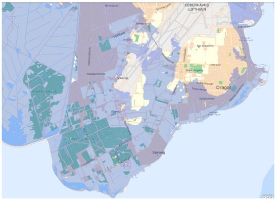 As the large capital in a developed country in the Global North, Copenhagen has a highly functional urban system and considerable resources to redesign the city with a view towards climate change. The state, the municipality of Copenhagen, and local municipalities have been collaborating for more than 10 years to elaborate revised designs and plans for a more resilient blue-green city, along with companies and a variety of consultancies with experts (environmental specialists, engineers, landscape architects, architects, and more). Design management gives ongoing detailed and expert feedback and feedforward information respecting these plans, both to the public and to the actors involved directly in the design and planning [,,]. The plans are comprehensive, covering urban redesign developments for three to eight decades ahead with respect to all aspects of climate change. The plan is to be co-funded in a distributive democratic manner, involving all societal layers from the state and private companies through municipalities to the individual citizen.