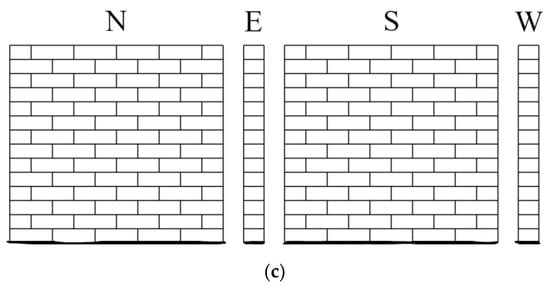 Representation of the crack pattern of URM walls with DPC: (a) B1, (b) B2, (c) B3—Sliding failure.