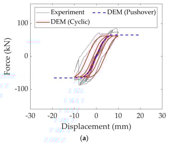 - Miglietta, P.C.; Bentz, E.C.; Grasselli, G. Finite/Discrete Element Modelling of Reversed Cyclic Tests on Unreinforced Masonry Structures. Eng. Struct. 2017, 138, 159–169. [Google Scholar] [CrossRef]