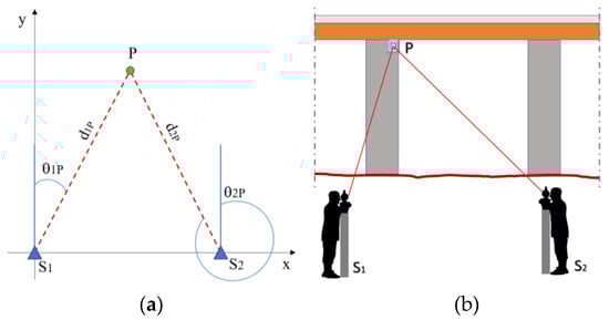 10]. This is due to the ease of application and the ability to quickly, reliably, and continuously obtain and store data on the structure’s movements. However, GNSS-based approaches require an unobstructed environment to receive satellites; as a result, monitoring certain parts of the structure may not be possible since good satellite coverage cannot be obtained. For this reason, the use of total stations (TSs) is widely used for monitoring structures [