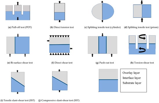- Bentz, D.P.; De la Varga, I.; Muñoz, J.F.; Spragg, R.P.; Graybeal, B.A.; Hussey, D.S.; Jacobson, D.L.; Jones, S.Z.; LaManna, J.M. Influence of substrate moisture state and roughness on interface microstructure and bond strength: Slant shear vs. pull-off testing. Cem. Concr. Compos. 2017, 87, 63–72. [Google Scholar] [CrossRef] [PubMed]