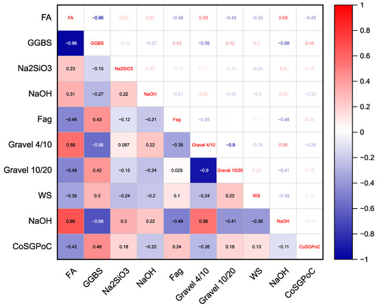 The manufacturing procedures of Ordinary Portland Cement (OPC), which is the cementitious material that is extensively used in concrete all over the globe, are connected with a high energy demand and large CO2 emissions. This is because of the fact that OPC is the cementitious material that is used in concrete [1,2,3]. The production of OPC is responsible for around 4 billion tons of carbon dioxide emissions each year, which accounts for approximately 5–7% of the total CO2 emissions globally [4,5]. Many strategies have been implemented to try to lessen the impacts of OPC creation and usage due to growing environmental preservation problems and climate change implications [6,7,8]. To reduce the dependency on organic matter cement (OPC), the use of supplemental cementitious materials (SCMs) and the recovery of materials that have not been utilized are both included in the aforementioned procedures [9,10,11]. Despite this, there are usually controls on the ratios of these SCMs substituted for OPC [12,13]. A good example of this would be fly ash, which, although displaying pozzolanic qualities throughout the different phases of OPC hydration, has only a marginal impact on the early stages of strength development [14,15,16]. Due to the fact that the incorporation of fly ash may slow down the pace of early hydration and extend the amount of time it takes for the material to set [17,18], its use in large quantities is restricted. In order to totally replace OPC, one of the most investigated methods is to use alkali activation to produce cementitious binders that are less harmful to the environment [19,20]. OPC clinker may be produced without the high-powered, elevated-temperature heating process [21,22]. Alkali-activated materials, also known as AAMs, do not need this approach. AAMs, which are sometimes referred to as geopolymers, are polymeric alum inosilicate cementing components that have three-dimensional spatial complex topologies. These ingredients are activated using an alkaline agent, such as sodium hydroxide or sodium silicate, and are mostly constituted of industrial wastes such as fly ash [23,24]. Geopolymers are characterized by their one-of-a-kind chemical makeup, which confers upon them exceptional mechanical performance and durability. The method’s main binder component is the reuse of waste resources, making it more environmentally friendly than OPC-based mixtures [25,26].