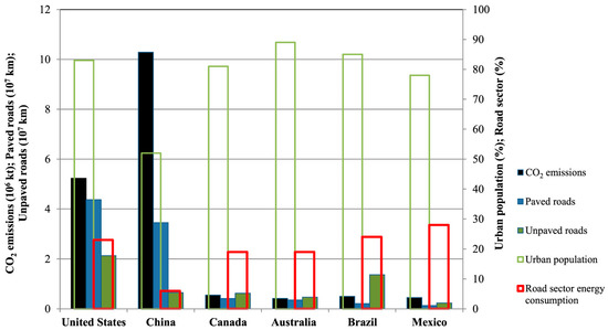 Unpaved roads, paved roads, urban population, road sector energy consumption, and CO2 emissions for different countries [180].