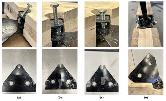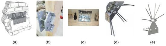 RC-CLT connections: (a) Iztok I [], (b) Iztok II [], (c) Angle bracket [], (d) X-RAD [], (e) RIC.