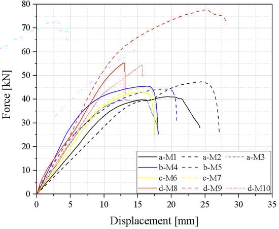 The properties of each curve, based on the method mentioned in EN 12512 [], are measured and presented in Table 4 for each test and in Table 5 for each failure mode.