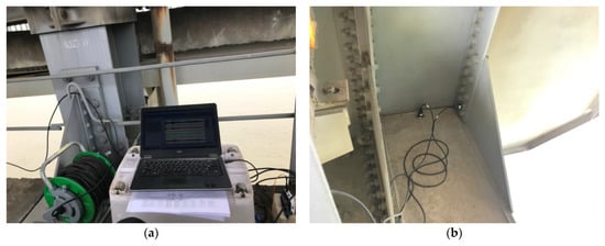 Data collection: (a) equipment station; (b) sensors’ installation location.