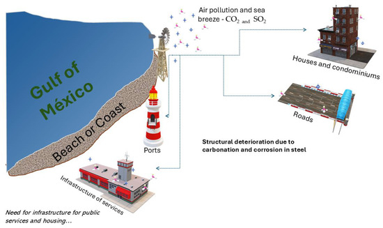 Effect of coastal environment on reinforced concrete infrastructure for community needs.