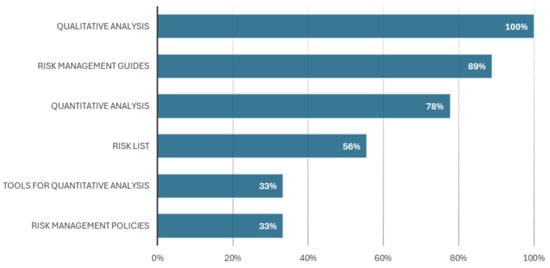 The risk management practices shown in Figure 1—including policies, guides, qualitative and quantitative analysis methods, and tools—were derived from a comprehensive review of documents from various DOTs [,,,,,]. All nine DOTs perform qualitative analysis as part of their risk management, while 89% implement risk management guides and 78% conduct quantitative analysis. Additionally, 56% maintain a risk list, suggesting that more than half actively track identified risks. In contrast, only 33% adopt formal policies and tools for quantitative analysis, indicating a gap in policy frameworks and toolsets for quantitative methods.