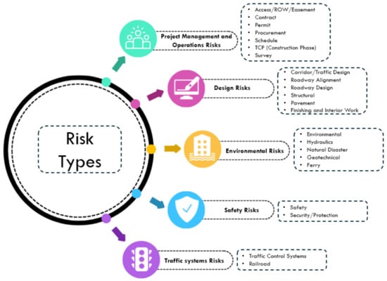 - National Cooperative Highway Research Program (NCHRP). Development of a Risk Management Strategic Plan and Research Roadmap; Transportation Research Board: Washington, DC, USA, 2021. [Google Scholar]
