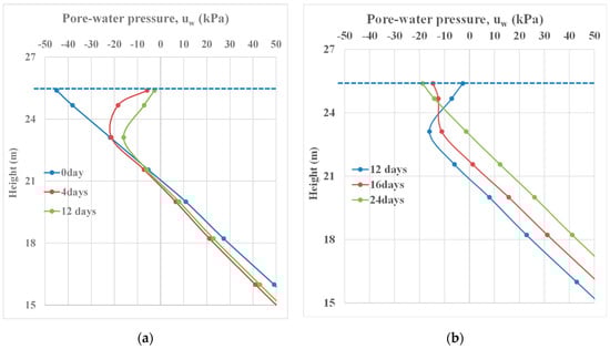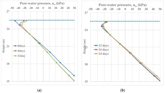 (a) PWP for the normal slope 10 m 27°—Wet Period; (b) PWP for the normal slope 10 m 27°—Dry Period.