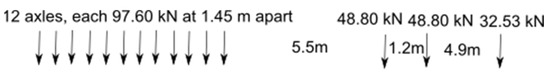 The system with 15 axles has no error owing to having only trailer axles on the bridge at the critical loading stage. The other systems have one or more PM axles on the bridge, thus resulting in inaccuracies in the MF, shown in the table, since these axle loads, supposed to be invariant, were reduced owing to the scaling being applied to all axles.