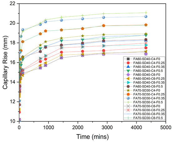 Effect of fibers on the capillary rise of FA–SD mixes.