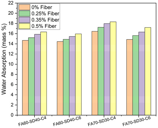 3.3.2. Effect of Fiber on Water Absorption of FA–SD Mixes