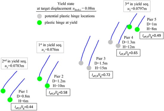 Yield state and sequence of yield of the bridge piers at deck target displacement .