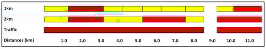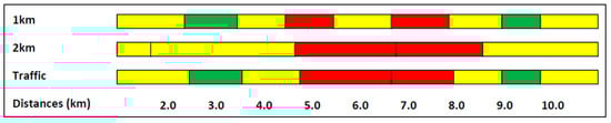The main knowledge gap addressed by this research is to translate the already known human factors principles [,] into a systematic procedure capable of quantitatively measuring the level of safety of a specific road stretch. This objective also covers the space of the updated Directive 2008/96/EC, which requires a procedure able to visually investigate the road safety level proactively. Moreover, as also highlighted by other authors [,], segmentation is still an issue in carrying out NSAs. Different road segmentations may often create different results, with a lack of consistency against different segmentations. This procedure tries to overcome this gap by proposing three different levels of segmentation: a first level with long sections for a fast first screening of the stretch, a second level with short segments for the detailed analysis and evaluation of the stretch, and again a much longer section to group the results of the shorter segments into a more practical segmentation for management for road agencies.