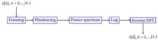 - Davis, S.; Mermelstein, P. Comparison of parametric representations for monosyllabic word recognition in continuously spoken sentences. IEEE Trans. Acoust. Speech Signal Process. 1980, 28, 357–366. [Google Scholar] [CrossRef]