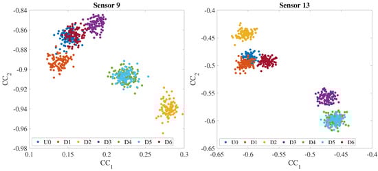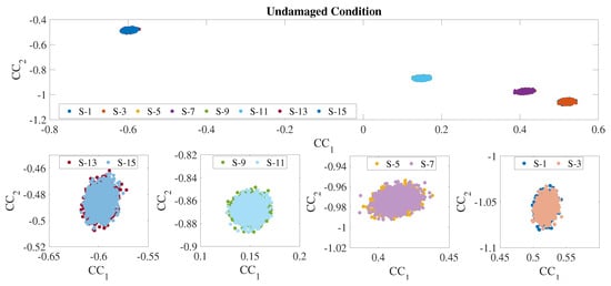 - Cross, E.; Manson, G.; Worden, K.; Pierce, S. Features for damage detection with insensitivity to environmental and operational variations. Proc. R. Soc. A Math. Phys. Eng. Sci. 2012, 468, 4098–4122. [Google Scholar] [CrossRef]