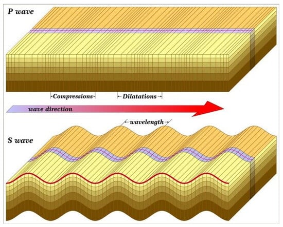 The secondary waves, also known as S-waves, emerge after some time, usually a few seconds, although this can change. These waves are transverse, meaning their displacement is perpendicular to the wave’s direction of motion, which causes the ground to tremble. Since structures are significantly weaker during this oscillation, these waves are primarily responsible for most damage and the fatalities and injuries brought on by structure collapse. Figure 3 shows the direction of the body waves produced by earthquakes.