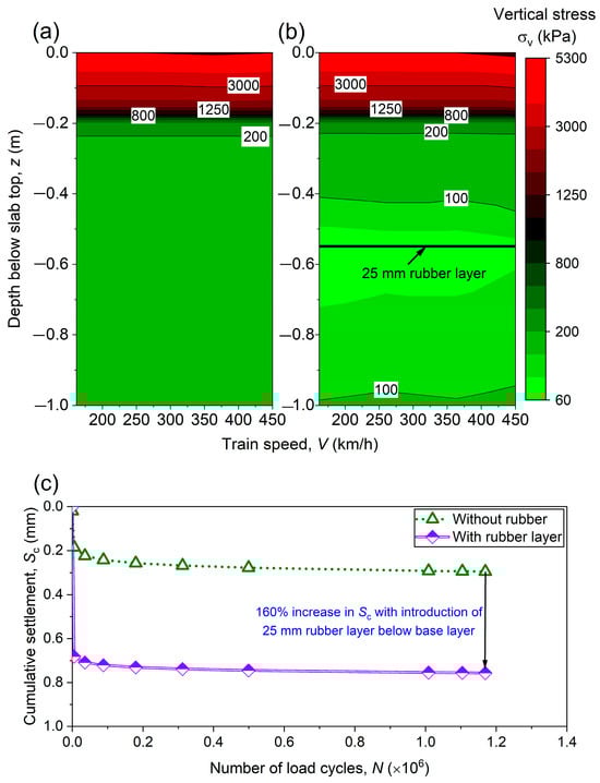 - The use of a scrap rubber layer reduces the vertical stress by up to 50% within the substructure of the slab track.