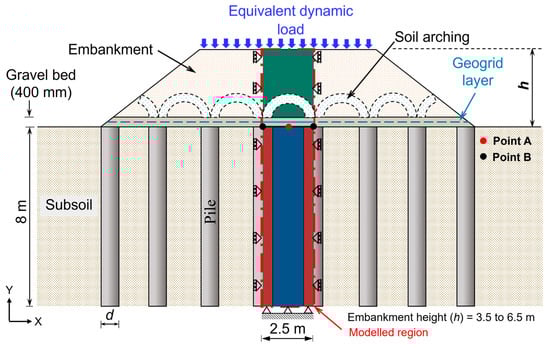 - Meena, N.K.; Nimbalkar, S.; Fatahi, B.; Yang, G. Effects of soil arching on behavior of pile-supported railway embankment: 2D FEM approach. Comput. Geotech. 2020, 123, 103601. [Google Scholar] [CrossRef]