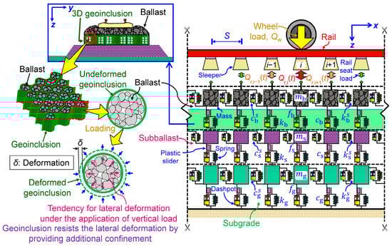 - Punetha, P.; Nimbalkar, S. Performance improvement of ballasted railway tracks using three-dimensional cellular geoinclusions. Geotext. Geomembr. 2022, 50, 1061–1082. [Google Scholar] [CrossRef]