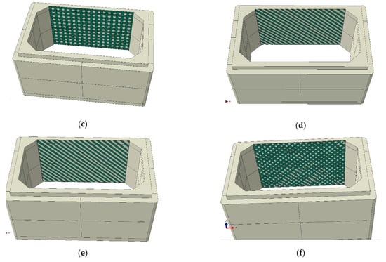 Configurations of CFRP: (a) Case-1; (b) Case-2; (c) Case-3; (d) Case-4; (e) Case-5; (f) Case-6.