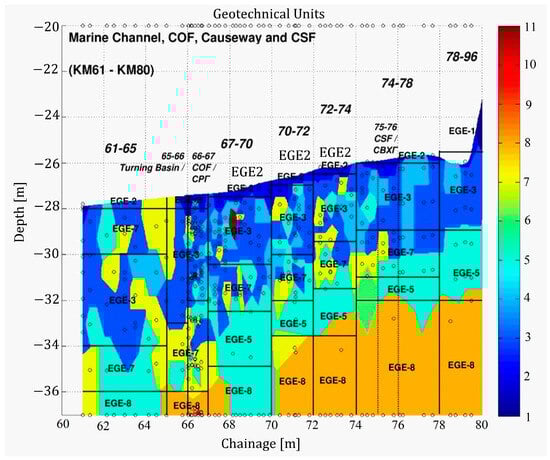 23], the following geotechnical elements (GE) were specified: the physical and mechanical characteristics of soils at construction sites are shown in