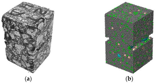- Nian, T.; Ge, J.; Li, P.; Wang, M.; Mao, Y. Improved Discrete Element Numerical Simulation and Experiment on Low-Temperature Anti-Cracking Performance of Asphalt Mixture Based on PFC2D. Constr. Build. Mater. 2021, 283, 122792. [Google Scholar] [CrossRef]