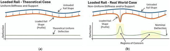 where w(x) = rail deflection at location x. Note that the above is for uniform stiffness, and as mud spots are evaluated, stiffness will have abrupt changes.