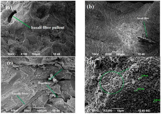 When basalt fiber reinforcement was added to lightweight structural concrete using volcanic tuff, studies were conducted that included scanning electron microscope examination of the samples. The images obtained (