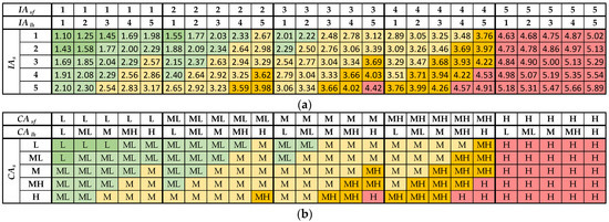 (a) IAlh and CAlh relation; (b) multi-risk IA and CA relation.