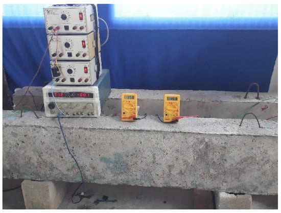 - Nguyen, T.H.Y.; Tran, V.M.; Pansuk, W.; Cao, N.T.; Bui, V.H.L. Electrochemical Chloride Extraction on Reinforced Concrete Contaminated External Chloride: Efficiencies of Intermittent Applications and Impacts on Hydration Products. Cem. Concr. Compos. 2021, 121, 104076. [Google Scholar] [CrossRef]